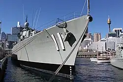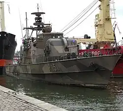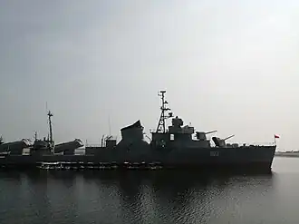 First ship built for the South African Navy. Sank at its moorings in 2020,[8] raised in 2021, sank again in 2022, and likely to be scrapped.[9] Still at the museum as of 2023.[10] | |