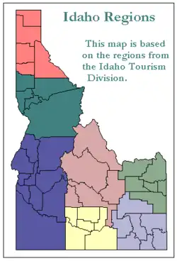 The Idaho Department of Commerce tourism division has divided the state into these seven regions which are used in the table above:[72]