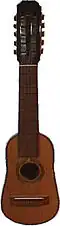 Small guitar-like fretted instrument with twelve strings arranged in four triple-strung courses. | 321.322 |
