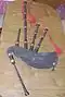 Bagpipe with three types of chanters, one a simple reed, open at one end, another a small, conical tube with eight fingerholes, one of which is the flea-hole (a small hole made out of a tube that can raise any note a half-step), and the last is a long, no-holed drone | 422.22-62 |