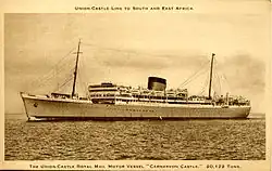| MV Capetown Castle | 1937 | Scrapped at La Spezia, Italy in 1967 | ![]() Postcard of RMMV Capetown Castle |
