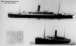 | SS Cathay | 1924 | Bombed by German aircraft, sank in 1942 | ![]() Cathay in Sydney Harbour |