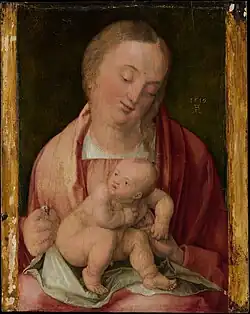 - ^ It was not unusual at the time to use parchment mounted on the panel instead of a primer as a simpler way to prepare the surface of the panel. It also allowed to copy the preparatory drawing before being mounted. Daniel Hess; Oliver Mack (2012). "Tradition und Vielfalt: Dürers Bildträger". In Daniel Hess; Thomas Eser (eds.). Der frühe Dürer (exhibition catalogue) (in German). Nürnberg: Germanisches Nationalmuseum. pp. 172ff. ISBN 978-3-936688-59-7.