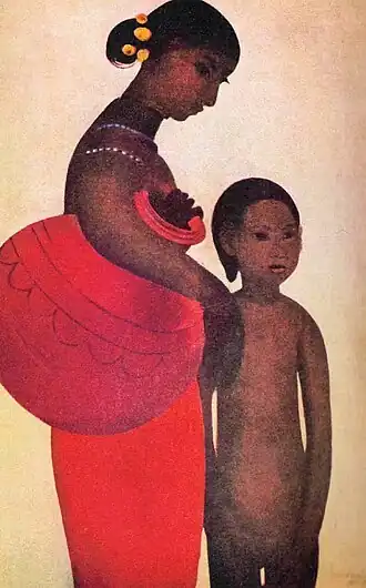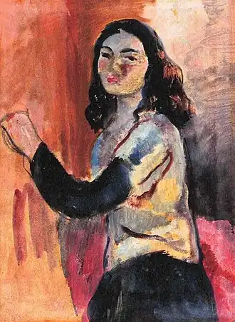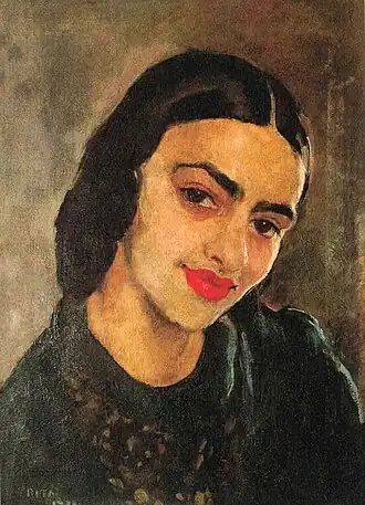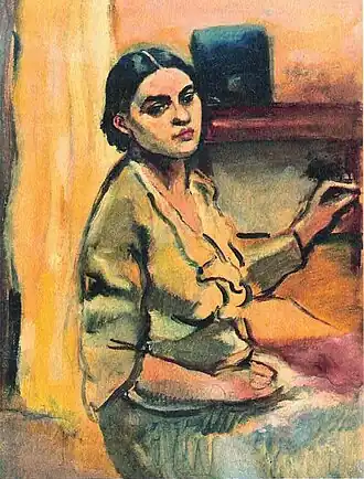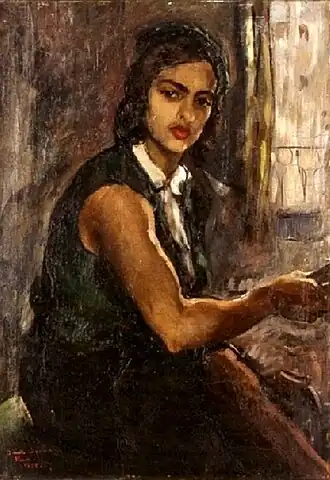 This is a list of paintings by Hungarian-born Indian artist Amrita Sher-Gil (1913–1941).[1] Over 60 of her paintings, of which most were portraits and self-portraits, were created between 1930 and 1932 in Hungary and France.[2] 19 were self-portraits painted in Europe between 1930 and 1934, and two, including one in a blue sari, were later completed in India.[3] Several of her paintings were of nudes; some of herself and others based on models of which most were female.[4]