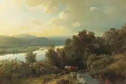 | Aften På Krøderen | 1849 | oil on canvas | 99.5x189 cm | Private Collection | with Adolph Tidemand | [10] | |