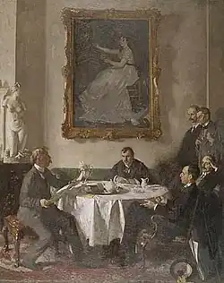 The Selecting Jury of the New English Art Club, 1909 | 1909 | oil on canvas | 69.9 cm x 90.2 cm | National Portrait Gallery, London[47] |