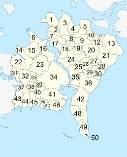 This is a list of parishes in Region Zealand. As of 2022, there are 2,133 parishes (Danish: Sogn) within the Church of Denmark, approximately 419 of which are within the Region Zealand.[1] They are listed below by municipality.