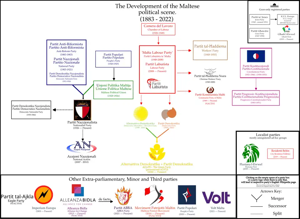 - ^ a b Sansone, Kurt. "From Floriana l-Ewwel to ABBA, Malta has 12 registered political parties". MaltaToday. Retrieved 26 February 2022.