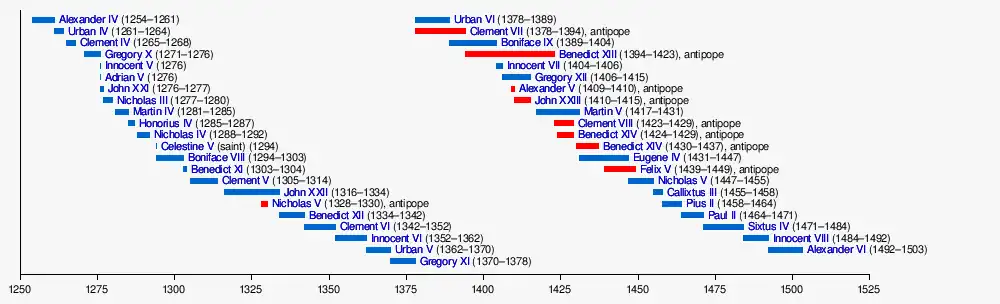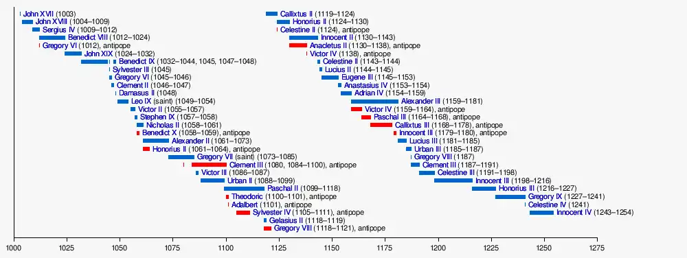 Antipopes are shown in red.