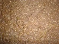 Porridge is a dish made by boiling ground, crushed, or chopped starchy plants (typically grains) in water, milk,[1] or both, with optional flavorings, and is usually served hot in a bowl or dish. It may be served as a sweet or savory dish, depending on the flavourings.