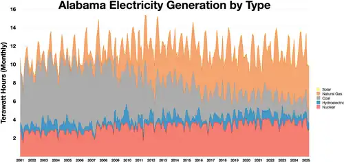 - ^ a b "Electricity Data Browser, Net generation for all sectors, Alabama, Fuel Type-Check all, Annual, 2001–24". www.eia.gov. Retrieved March 2, 2025.