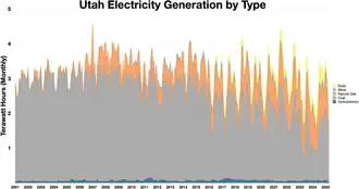 - ^ a b c "Electricity Data Browser, Net generation for all sectors, Utah, Fuel Type-Check all, Annual, 2001–23". www.eia.gov. Retrieved July 3, 2024.