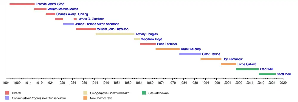 | 2 | Thomas Walter Scott | 11 years, 38 days | September 12, 1905 | October 20, 1916 | 3 | █ Liberal |