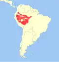 The primates of Colombia include 41 extant species in 13 genera and five families.[1][2][3][4] Additionally, 12 fossil species in 10 genera and five families have been identified in Colombia, mainly at the La Venta Lagerstätte of the Honda Group, mostly from the so-called "Monkey Unit", "Monkey Beds" or "Monkey Locality",[5] the richest site for fossil primates in South America.[6] As of 2013, of the 30 fossil primate species found in South America dating to the Late Oligocene (26 Ma) to the Pleistocene, twelve are described from the Honda Group. The genera Branisella, Caipora, Carlocebus, Chilecebus, Dolichocebus, Homunculus, Killikaike, Mazzonicebus, Proteropithecia, Protopithecus, Soriacebus, Szalatavus and Tremacebus have been discovered in Argentina, Bolivia, Brazil, Chile, Ecuador and Peru and are not known from Colombia. Additionally, Antillothrix, Insulacebus (both Hispaniola), Paralouatta (Cuba) and Xenothrix (Jamaica) were restricted to the Caribbean.[7] The discovery of Perupithecus, described in 2015 from the Late Eocene (35-36 Ma) Santa Rosa fauna in the Yahuarango Formation of the Peruvian Amazon, pushes back the evolutionary lineage of New World primates.[8]