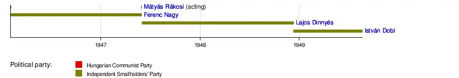 - ^ Took over direction of the Council of Ministers on 14 May 1947 upon Nagy's departure to Switzerland. Became sole Acting Prime Minister upon Nagy's deposition.