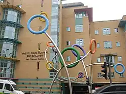 Lollipop Be-bop | Bristol Royal Hospital for Children, Upper Maudlin Street | 2001 | Andrew Smith | Sculpture | Stainless steel with optic fibre lighting | [8][7]