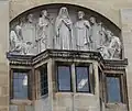 Four ecclesiastical figures | South side of Great Gatehouse | 1914 | Charles James Pibworth | Four statues | Portland stone | Grade I | [2][11] | ||