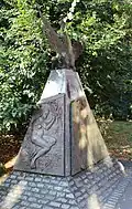Memorial to the victims of the Katyn massacre | Grounds of Clifton Cathedral | 1985 | Alexander Paul Klecki | Sculpture | Fibre glass relief panel mounted on a block of Cornish granite with a plinth of Portland stone | [1][2]