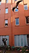 St Odilla and the Bird | Inner courtyard, Bristol Eye Hospital, Lower Maudlin Road | 1985 | Stephen Joyce | Sculpture group | Bronze resin figure, bronze bird | 160 cm high figure, 240 cm wingspan of bird | [1][2] | ||