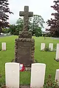 Canadian soldiers memorial | Parish Church of St Margaret, Bodelwyddan | 1919 | W. Mansley & Son, monumental sculptors | Cross on pedestal | Red sandstone | [2][3] | |||