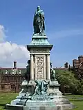 William Ewart Gladstone | Grounds of Gladstone's Library, Hawarden | Erected 1925 | John Hughes | Statue on pedestal | Bronze and stone | Grade II | Q29492802 | Originally commissioned in 1910 for Dublin.[16][17]