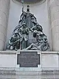 Exchange Newsroom memorial | Exchange Flags | 1924 | Joseph Phillips | Sculpture group, base & plaque | Bronze & stone | Grade II | Q96607282 | [28][29] | |
