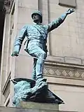Cunard War Memorial | Cunard Building, Pier Head | 1921 | Arthur Davis and Henry Alfred Pegram | Statue on column | Copper & granite | Grade II | Q26304089 | [24][25] | |