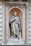 | Statue of Michelangelo | Second-floor façade, 5th niche from left | c. 1872 | William Calder Marshall | Sydney Smirke | Statue in niche | Grade II* | [64] | |