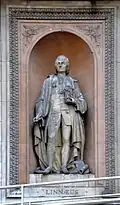 Statue of Carl Linnaeus | First storey | 1870s | Patrick MacDowell | James Pennethorne | Statue in niche | Grade II* | [69] |