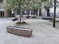 2004 | John Aiken | Rolfe Judd | Sculptures | — | The bench-like sculptures are formed from black granite from Zimbabwe and silver-grey granite from Portugal spliced together.[34] | |