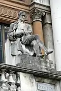 6 Burlington Gardens, a Grade II* listed building now used by the Royal Academy, was designed by James Pennethorne in 1866–1867 for the University of London. In 1868 the university's Senate proposed the subjects of the 22 statues for the façade: Isaac Newton to represent Science, Jeremy Bentham for Law, John Milton for the Arts and William Harvey for Medicine; Galen, Cicero, Aristotle, Plato, Archimedes and Tribonian (the last of whom was replaced in the final scheme by Justinian) as representatives of "ancient culture", and the "illustrious foreigners" Gottfried Wilhelm Leibniz, Georges Cuvier, Carl Linnaeus, Galileo Galilei, Johann Wolfgang von Goethe and Pierre-Simon Laplace. Finally, Adam Smith, John Locke, Francis Bacon, John Hunter, William Shakespeare (replaced by David Hume) and John Dalton (replaced by Humphry Davy) were included as "English worthies" (although Smith, Hunter and Hume were Scottish). Shakespeare was substituted as his achievement was felt to be "independent of academic influence"; he was instead commemorated with a statue apart, inside the building.[69]