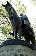 Erastus B. Wolcott | Lake Park | 1920 | Francis Herman Packer | portrait | bronze | 15 ft 4 in | Milwaukee County Department of Parks, Recreation and Culture | Figurative portrait[16] | |