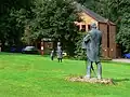 William Henry Fox Talbot photographing a girl and her dog | Greenways Business Park, Chippenham | 1993 | Greta Berlin | sculpture | Bronze | 7 feet tall | Commissioned by Timberlaine.[29]