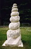 The Twister | Monkton Park, Chippenham | 21 September 1995 | Lorraine Frost | Sculpture | Stone | 1.8 metres tall | The drawings were by local children. | ||