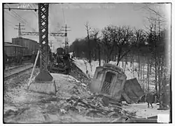 ^"9 Dead, 65 Hurt In Triple Wreck On The New Haven"(PDF). New York Times. February 23, 1916. Retrieved 2013-12-29. Local Train Smashes Into the Connecticut River Special Near Milford, Conn. Then Sidewiped By Freight. Running Back from Stalled Express to Signal, Flagman Is Killed Before Crash. Yale Alumni Aid Injured. Priests and Nuns Also Attend the Victims. Engineer May Have Run Past Block Signal. ...