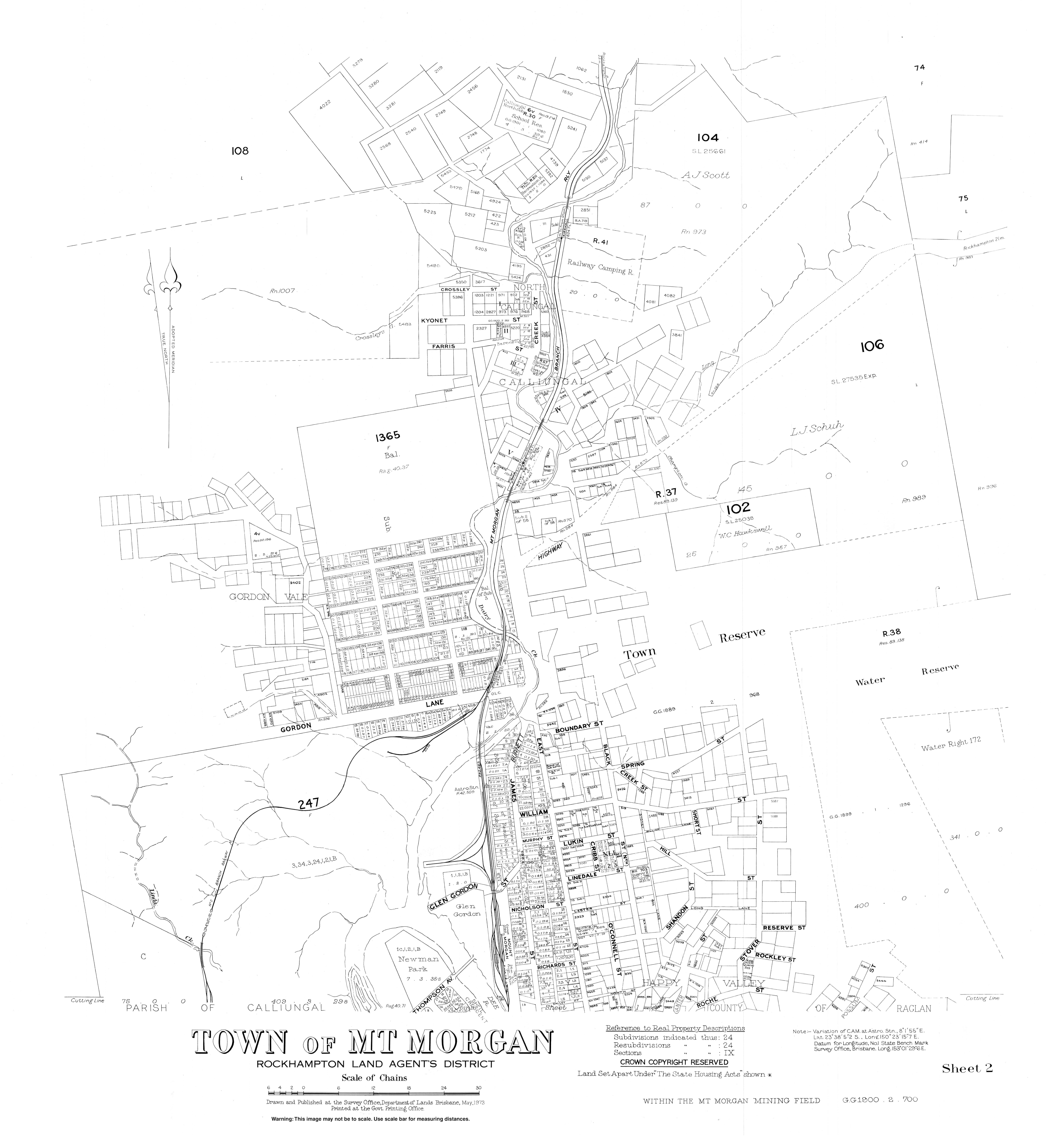 - ^ "Town of Mount Morgan" (Map). Queensland Government. 1972. Archived from the original on 11 April 2022. Retrieved 11 April 2022.