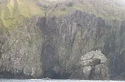 | Stac an Tùill | Sea stack | 58°16′29″N 6°54′59″W / 58.27472°N 6.91639°W | Bearasay, Outer Hebrides | 43m[96] | Stack of the cave from Scottish Gaelic: tuill | There is a cave on Bearasay just to the north of the stack.[43] | |