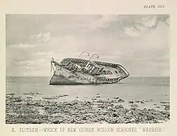 While on an Arcticwhaling voyage, the 463-gross register ton, 134-foot (41 m) steambark was wrecked during a gale and snowstorm off Point Barrow, District of Alaska, when she became stranded on a snow-covered sandspit that her captain mistook for slush ice floating on the sea. The steamersBelvedere and Navarch (flags unknown) rescued her entire crew of 45. During salvage operations, the wreck of William Lewis was destroyed by an accidental fire on 20 March 1892.[40]