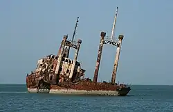 | Tiran | ![]() The cargo ship, on a voyage from Banjul, Gambia to Las Palmas, Gran Canaria, Spain, foundered 1.5 nautical miles (2.8 km; 1.7 mi) off Joal, Senegal and became a wreck on Palmarin Beach.[67][68] |