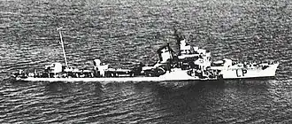 World War II: The Leone-class destroyer was bombed and damaged in the Red Sea 10 nautical miles (19 km) off Port Sudan by Fleet Air Arm aircraft. She was shelled and sunk by HMS Kingston (Royal Navy). Two crew members were killed and one died of wounds months later.[1][32]