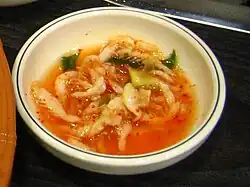 Korea | A variety of jeotgal, salted and fermented food made with small shrimp. It is the most consumed jeotgal along with myeolchijeot (salted anchovy jeot) in South Korea, mostly used as an ingredient in kimchi and dipping pastes. The shrimp used for making saeujeot are called jeotsaeu (젓새우) and are smaller and have thinner shells than with ordinary shrimp.[29] The quality of saeujeot largely depends on the freshness of the shrimp. In warm weather, fishermen may immediately add salt for preliminary preservation. | ||||