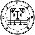 - ^ a b c d e f g h i j k l m n o p q r s t u v w x y z aa ab ac ad ae af ag ah ai aj ak al am an ao ap aq ar as at au av aw ax ay az ba bb bc bd be bf bg bh bi bj bk bl bm bn bo bp bq br bs bt Crowley, Aleister; Mathers, Samuel Liddell MacGregor (1995), The Goetia: the lesser key of Solomon the King : Lemegeton--Clavicula Salomonis Regis, book one (2 ed.), Red Wheel, ISBN 978-0-87728-847-3