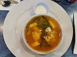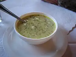 Iran, Azerbaijan, Turkey | Potage | A yogurt soup that consists of yogurt and leafy vegetables. Served hot. |