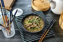 China | Dessert | A sweet soup containing powdered black sesame seeds and rice, typically served warm |