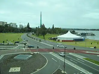 Part of the Barrack Street Jetty precinct, Bell Tower Precinct, and the present day Elizabeth Quay. "The so called “Barrack-street Square” is really a series of squares intersected by drives and footpaths."[6]