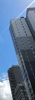 In the mid-2010s, another building boom began in the city centre, adding residential towers such as Queens Residences (2016), Park Residences (2017) and Victoria Residences (2018) to the skyline. Construction on the city's current tallest building, Commercial Bay, began in 2016 and was completed in 2020, during the Covid-19 pandemic. The skyscraper's anchor tenant is PwC, which gives it its other name of PwC Tower; the pandemic delayed the opening of the building's retail centre. The skyscraper is one of New Zealand's most sustainable high-rise office building and currently holds a 5 Star Green Building and Green Star Design Rating.[17] Also completed in 2020 was The Pacifica, overtaking Metropolis to be New Zealand's tallest residential building. The top two floors of the building contain a penthouse that was originally listed for sale at NZ$40 million, which would have made it the most expensive apartment ever sold in New Zealand.[18] This apartment was later split into four separate units.[19]