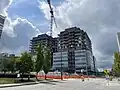 Unlike many other big American cities, Cleveland had few skyscraper construction projects in the 2000s. This trend changed in the 2010s with the construction of multiple new skyscrapers including the Ernst & Young Tower (now Oswald Tower) in 2013, which is 330 feet (100 m) tall,[5] and the Hilton Cleveland Downtown Hotel, which opened in 2016 and is 374 feet (114 m) tall.[6] The newest additions to the Cleveland skyline include the 29-story, 350-foot-tall (110 m) Beacon apartment building, on Euclid Avenue; the 34-story, 396-foot-tall (121 m) Lumen Tower, at Playhouse Square; and the 24-story, 267-foot-tall (81 m) Artisan apartment building, in the University Circle district. Notable buildings under construction are the 36-story, 616-foot-tall (188 m) Sherwin-Williams global headquarters,[7][8] and the 23-floor, 250-foot-tall (76 m) Skyline 776 apartments downtown.[9]