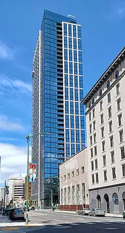 The U.S. city of Oakland, California is the site of more than 95 high-rises, the majority of which are located in its downtown district.[1] In the city, there are 30 buildings taller than 200 feet (61 m). The tallest building is the 28-story Ordway Building, which rises 404 feet (123 m).[2]