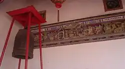 The front entrance has stone carvings on both sides and painting on the doors. The inner courtyard is also made from brick, and one can see the inner shrine from this courtyard. It also includes the traditional drum and bell and has numerous wood carvings and paintings.
