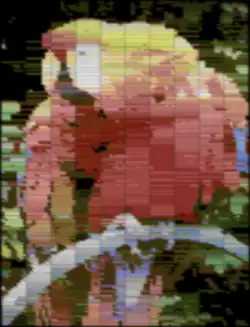 The above image assumes there is no limit on the number of colors per scan line. With the system's actual color restrictions (and proper change in aspect ratio), the same image would look very different: